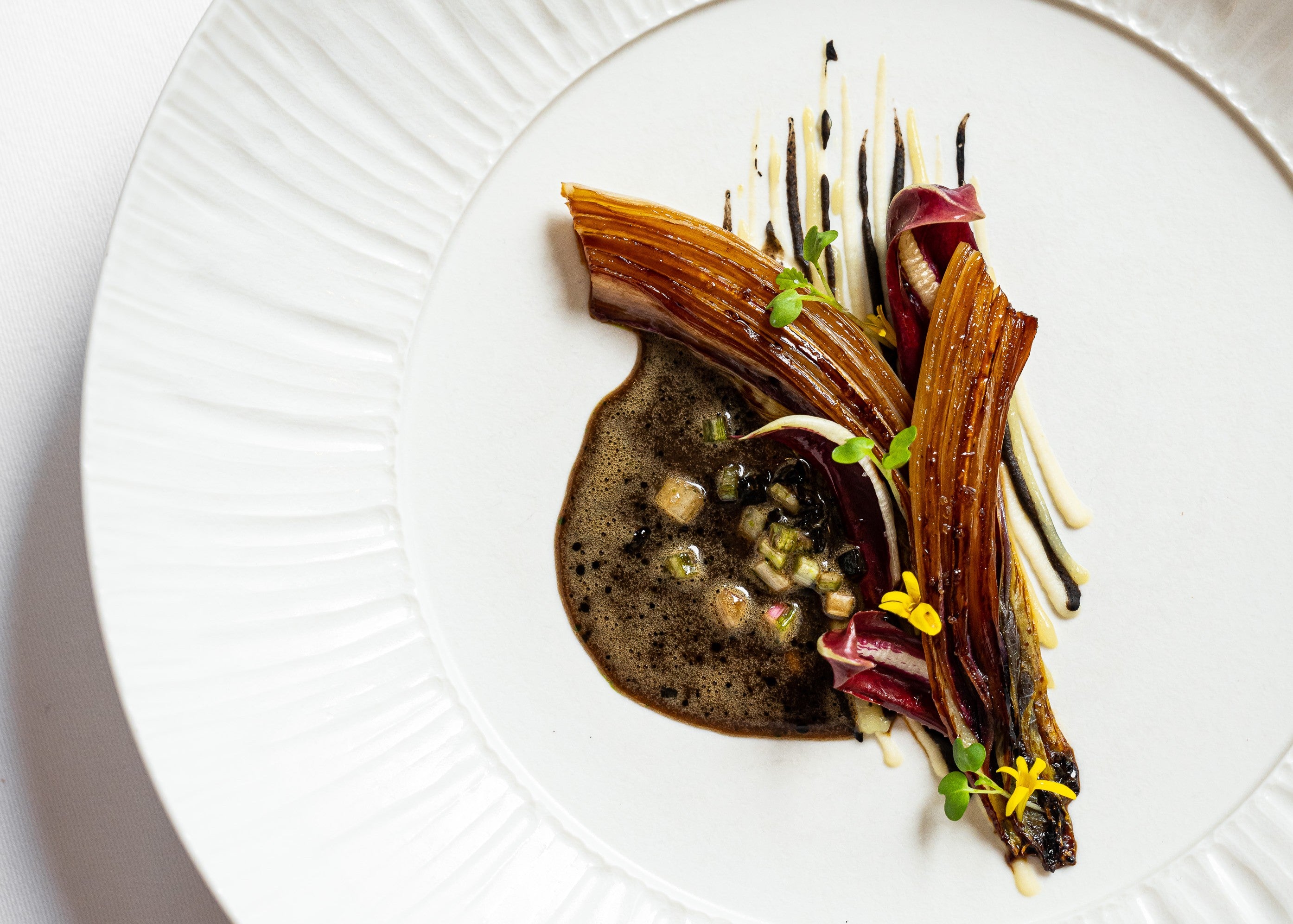 À la carte, l'asperge verte du Val d'Oise marinée à la Chartreuse et glace aux jeunes pousses d'épicéa, le poireau de nos maraîchers au caviar daurade et capucine, la betterave du Perche aux baies de Manakara. Ici se joue une cuisine d'émotion évidente, d'intuition percutante, pour une nature magnifiée et transcendée.