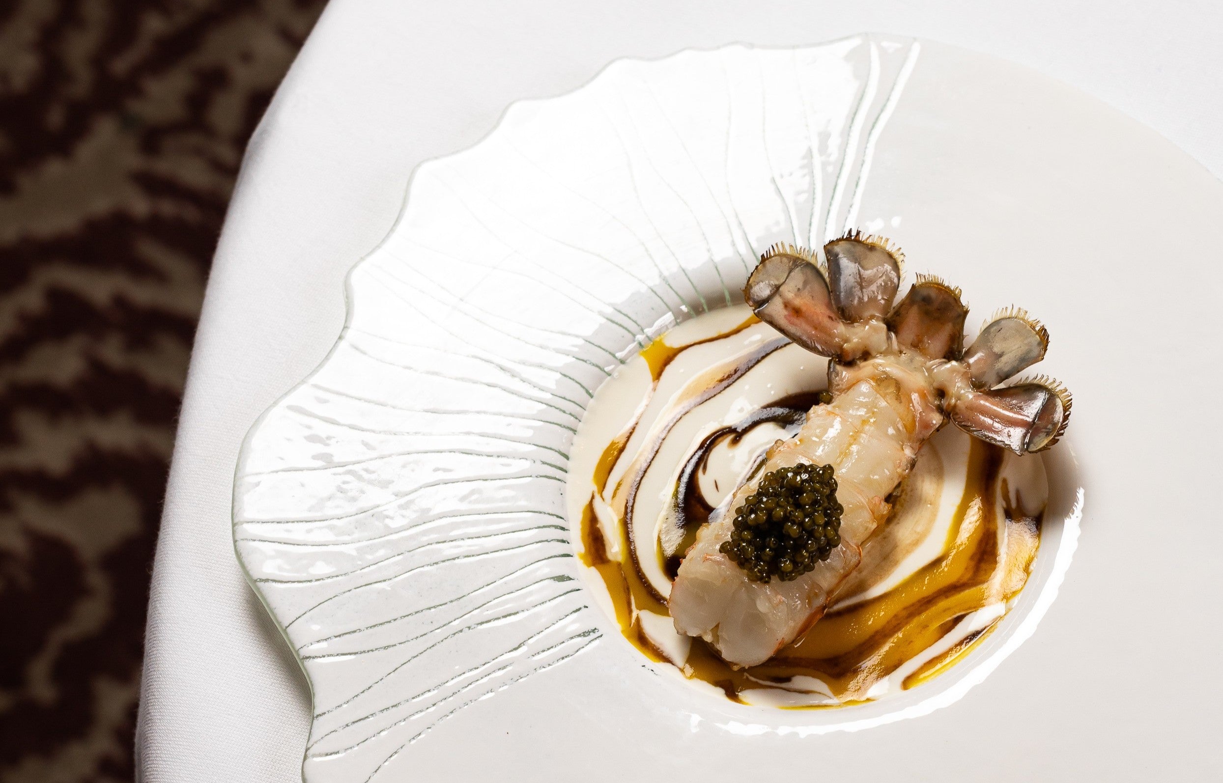 Quel défi de taille que de reprendre la suite d'Alain Senderens, resté dans la Maison pendant près de 40 ans ! Pour sa première place en nom propre, le Chef Hugo Bourny honore son rôle avec la plus grande grâce. Depuis plus de 15 ans, il a appris auprès des meilleurs - Arnaud Donckele à la Vague d'Or, Anne-Sophie Pic à Valence, puis Hélène Darroze - forgeant une personnalité élégante et pudique. Au sein d'une génération de chefs charismatiques, il se distingue par sa subtile assurance plutôt que par des démonstrations tapageuses, établissant sans effort son statut incontesté de la Maison.